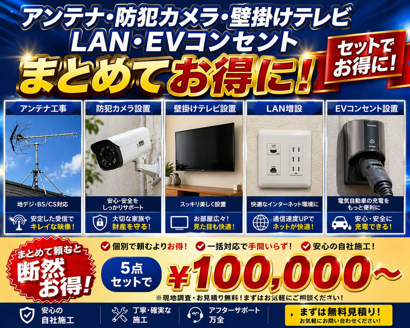 お客様のご要望に応じた工事を行いながら、アンテナ工事やエアコン、インターフォンなど多様な設備工事に対応しています。電波状況や建物の構造を考慮して、快適な環境に整える丁寧な施工を埼玉にて実施します。